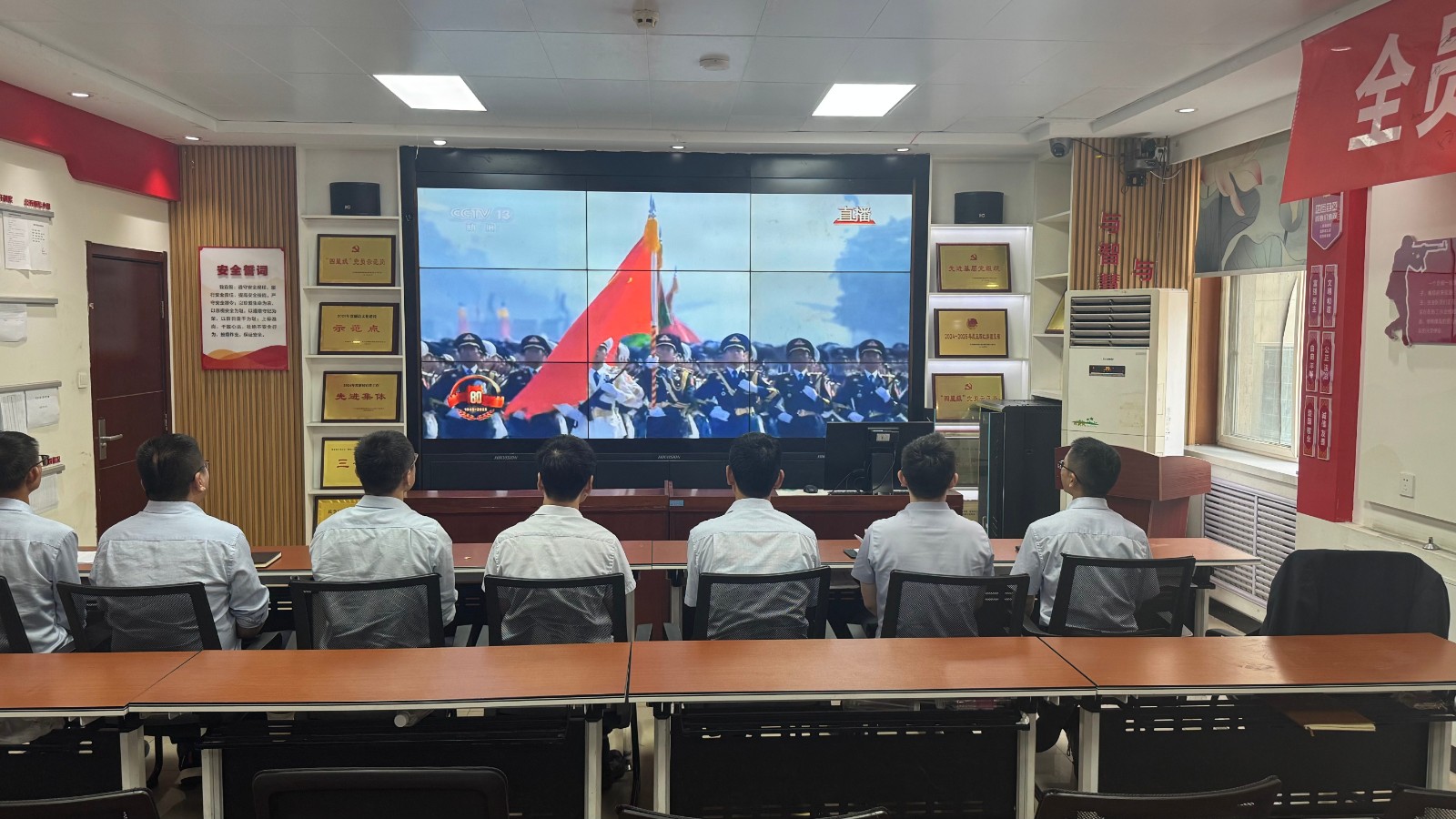 歷史燭照未來,精神永續(xù)傳承。為深切緬懷在抗日戰(zhàn)爭中英勇獻身的革命先烈,大力弘揚偉大的抗戰(zhàn)精神,引導全體黨員、職工銘記光輝歷史、堅定理想信念、強化責任擔當,9月3日,機運工區(qū)黨支部組織開展了“銘記歷史偉業(yè),傳承紅色基因”主題黨日活動,組織全體黨員集中觀看紀念中國人民抗日戰(zhàn)爭暨世界反法西斯戰(zhàn)爭勝利80周年閱兵儀式現(xiàn)場直播。上午九時整,機運工區(qū)全體黨懷著無比崇敬與激動的心情,目光齊聚屏幕。伴隨著激昂雄壯的國歌奏響,鮮艷的五星紅旗在天安門廣場冉冉升起,大家心潮澎湃,肅然起敬。隨后,規(guī)模宏大、氣勢磅礴的閱兵式正式開始。屏幕上,一個個整齊劃一、威武雄壯的徒步方隊,邁著鏗鏘有力、撼人心魄的步伐走過檢閱臺,堅毅的眼神、挺拔的身姿,充分展現(xiàn)了新時代軍人聽黨指揮的忠誠品格和能打勝仗的過硬本領;一列列代表著國家科技實力與國防現(xiàn)代化建設最新成果的裝備方隊,鐵流滾滾,氣勢如虹,尖端武器依次亮相,彰顯了捍衛(wèi)國家主權、安全、發(fā)展利益的堅定決心與強大能力;雄鷹呼嘯,劃破長空,戰(zhàn)機編隊以精準的隊形和磅礴的氣勢接受檢閱,描繪出壯美的藍天畫卷,宣示著捍衛(wèi)國家領空安全的鋼鐵意志。整個閱兵過程,秩序井然、威武雄壯、氣勢恢宏,生動詮釋了人民軍隊“聽黨指揮、能打勝仗、作風優(yōu)良”的強軍目標,全方位展示了在黨的堅強領導下,國家日益強大的綜合國力和維護世界和平的堅定信念。屏幕前,黨員們全神貫注,無不被這震撼人心的場面所感染,民族自豪感與榮譽感油然而生,現(xiàn)場不時響起由衷的贊嘆和熱烈的掌聲。通過本次“銘記歷史偉業(yè),傳承紅色基因”主題黨日活動,機運工區(qū)黨支部全體黨員經歷了一次深刻的精神淬煉與思想升華。大家的歷史使命感、民族自豪感、崗位責任感得到顯著增強,紛紛表示以更加飽滿昂揚的精神狀態(tài)、更加求真務實的工作作風、更加開拓創(chuàng)新的進取意識,恪盡職守,銳意進取,全力以赴保障原煤運輸安全高效,為工區(qū)及公司的持續(xù)高質量發(fā)展貢獻全部力量!
